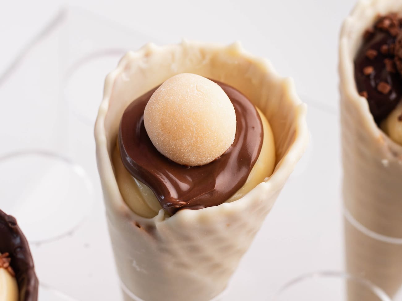 Cone recheado com um delicioso brigadeiro de avelã e Nutella.