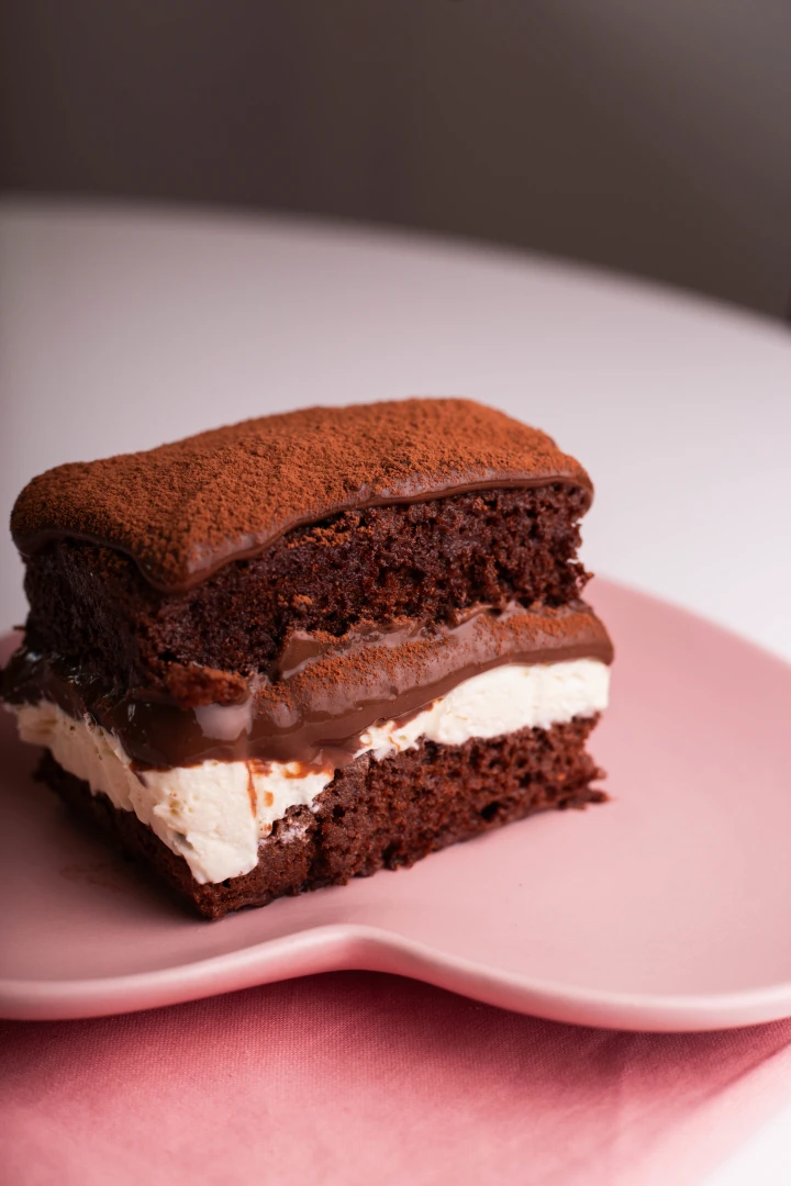 Bolo gelado, molhadinho com camada generosa de recheio de Ninho e ganache de Nutella, finalizado com cobertura especial da casa e Nutella.